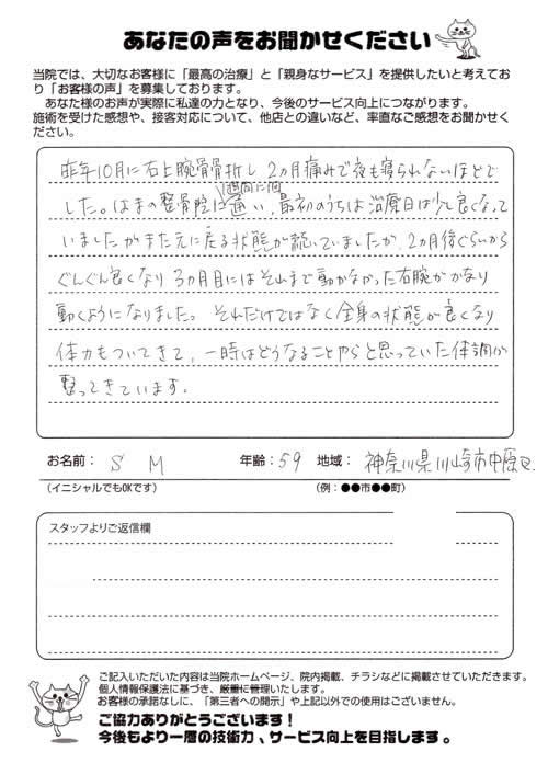 定期的に通っていて、次第に具合が良くなっていくのが実感できました。特に右アゴに違和感があったのが、ほとんどなくなり、感謝しております。